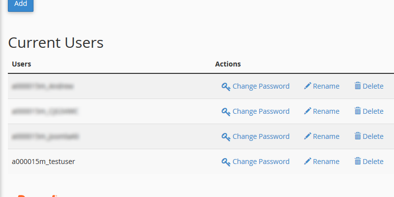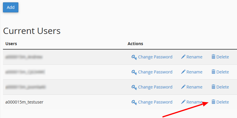 Locate the "Current Users" section at the bottom of the page, and click the "Delete" icon next to the user you want to delete.